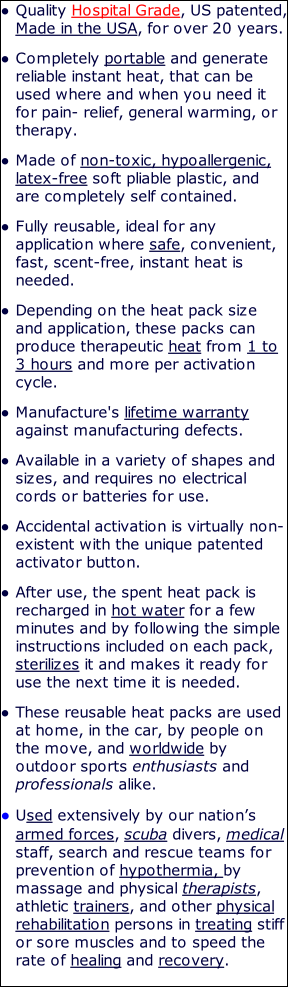 Sample Uses for our Hospital Grade Reusable Instant Heat